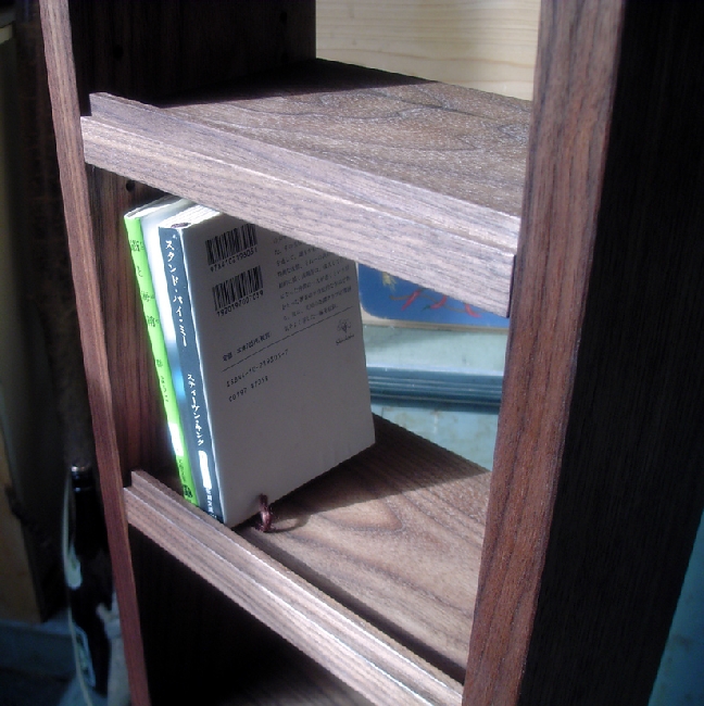 左の写真は、実は、隙間家具でした。あまり見えないところなのにウォールナットで作らせていただき感謝です。右側の棚はタモで製作。趣味のお裁縫スペースです